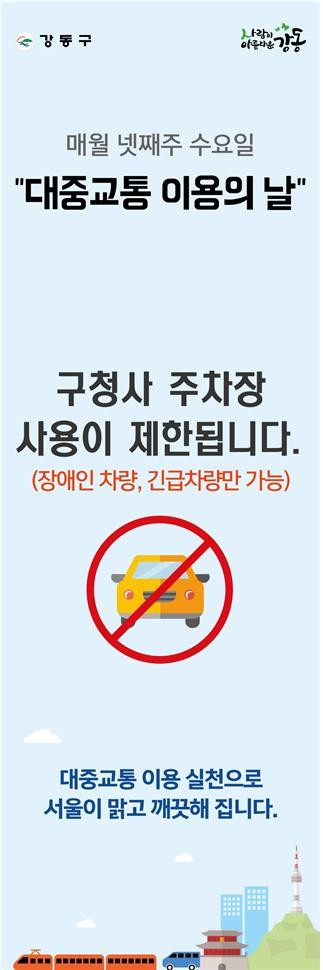 서울 강동구(구청장 이해식)가 오는 24일부터 매월 넷째주 수요일마다 ‘대중교통 이용의 날’을 운영을 실시한다.