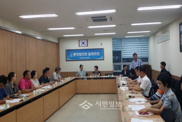 경기 동두천시 송내동 주민센터에서는 최근 통장협의회 월례회의를 통해 3명의 신임통장에게 위촉장을 전달하였다. 사진은 회의에 참여한 통장 및 관계자들이 이야기를 나누는 모습.(사진제공=동두천시청)