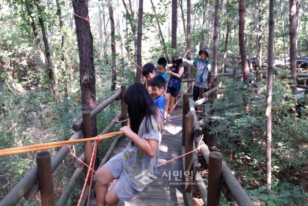 최근 경기 여주시 황학산수목원에서 지역내 초등학생을 대상으로 '숲에서 세종을 만나다'란 테마로 진행된 13기 숲속학교가 성황리에 막을 내렸다. 사진은 참여 학생들이 야외 프로그램을 수행하고 있는 모습.(사진제공=여주시청)