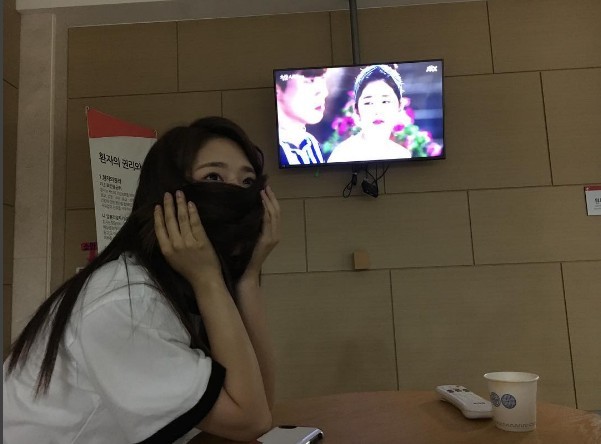 사진 속 박혜수는 자신의 머리로 얼굴을 다 가린 채 TV를 보고 있다. 그가 보고 있는 건 바로 자신이 출연한 드라마. 이 모습을 찍은 류화영은 "우리은재 부끄러버여 #청춘시대 #유은재 #박혜수 #본방사수"라는 말로 두 사람의 친근함을 과시하기도 했다.