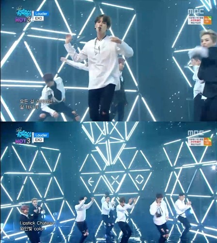 엑소는 이날 모노톤의 의상과 함께 파워풀한 댄스를 비롯한 다이나믹한 무대 매너를 펼쳤다.