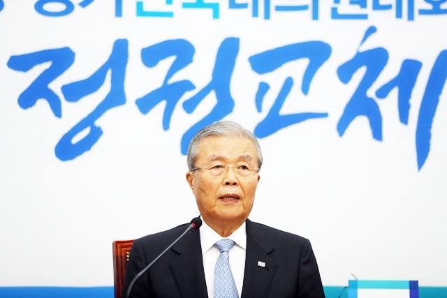 더불어민주당 김종인 비상대책위 대표가 21일 오전 국회에서 퇴임 기자회견을 하고 있다.
