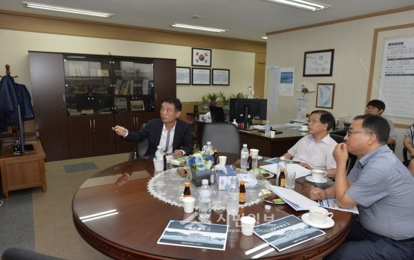 최근 민천식 경기 포천시장 권한대행은 시의 주요 현안사업인 K-디자인빌리지 조성사업장과 구리~포천간 민자고속도로 사업장 등을 방문하는 현장답사를 실시했다. 사진은 한국도로공사 구리포천건설사업단을 방문한 민 권한대행(가운데)이 사업설명을 청취하는 모습.(사진제공=포천시청)