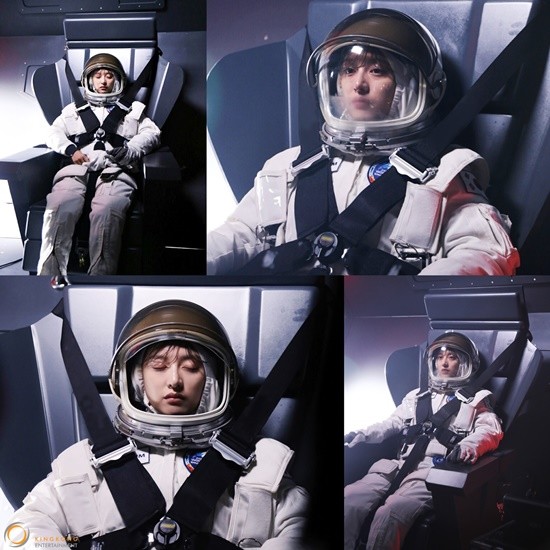 사진 속 김지원은 하얀 우주복과 헬멧을 착용한 채 의자에 앉아 비장한 표정을 짓고 있다. '한국형 블록버스터 SF 영화' 콘셉트로 진행된 이번 광고 촬영장에서 그는 우주선의 이륙을 준비하는 듯한 장면을 연출하며 몽환적이고 신비로운 분위기를 자아냈다.