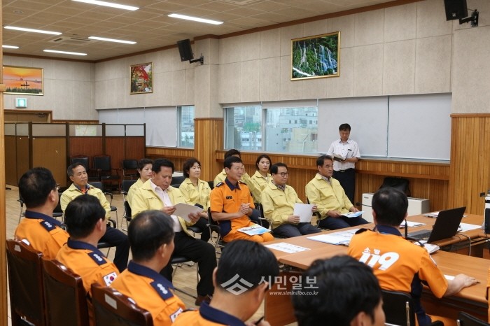 최근 서울 도봉구의회 의원들은 도봉소방서 등 지역내 주요기관의 을지연습 종합상황실을 방문해 훈련을 참관하고 참가 직원들의 노고를 격려했다. 사진은 이근옥 의장(앞줄 오른쪽에서 두번째)과 구의원들이 소방서에서 훈련을 참관하는 모습.(사진제공=도봉구의회)
