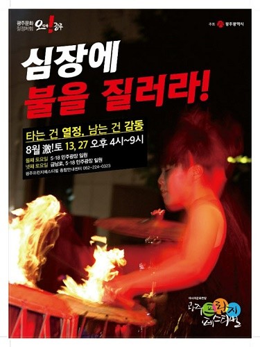 B-boy 공연이 열리는 5‧18기록관 앞 열정무대에서는 광주의 대표적 무용단 중 하나인 서영무용단이 전통춤을 현대적으로 재창작한 작품‘비(飛) 창공’을 무대에 올리고, 김덕령 장군과 이씨 부인의 이야기를 춤으로 창작한‘환벽당 사랑이야기’, 지상 최대의 버블로 인기를 모으고 있는 ‘안동윤의 버블쇼’등이 관람객을 기다린다.