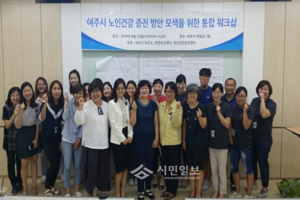 지난 24일 경기 여주방문보건센터는 노인건강증진 방안 모색을 위해 여주정신건강증진센터와 보건소 등과 함께 산학협력 연계 워크숍을 개최했다. 사진은 행사에 참여한 관계자들이 기념촬영하는 모습.(사진제공=여주시청)
