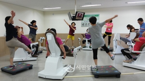 충남 아산시보건소는 배방읍 용연동길 50(장재리 1202)에 주민 밀착형 건강관리 전담기관으로 배방건강생활지원센터를 설치해 최근 '건강프로그램' 운영을 시작했다. 사진은 주민들이 건강 프로그램을 진행하고 있는 모습.(사진제공=아산시청)