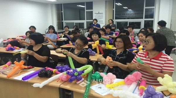 최근 인천 강화군자원봉사센터는 강화읍적십자회관 1층에서 총 36명의 자원봉사자가 참석한 가운데 '풍선아트 전문봉사자 양성교육'을 실시했다. 사진은 교육 참가자들이 풍선아트 교육을 받고 있는 모습.(사진제공=강화군청)
