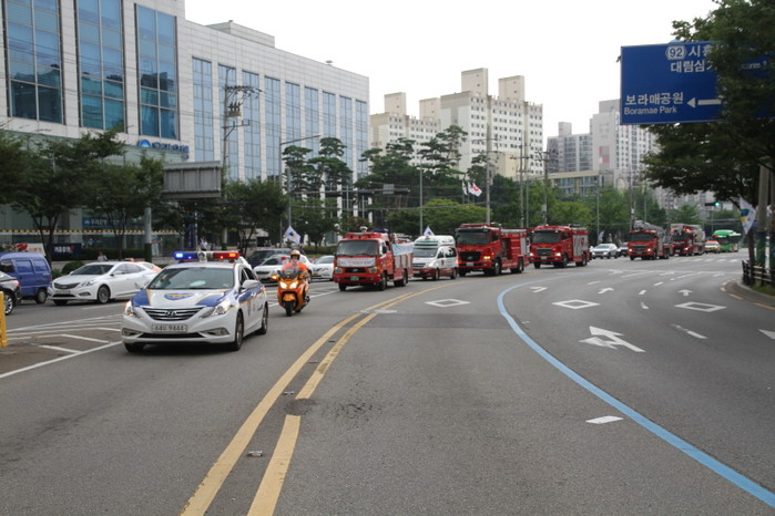 지난 24일 서울 동작소방서는 민방위의 날을 맞아 동작경찰서 관계자 등 인원 20명이 참여한 가운데 지역내 상습정체지역 주변에 대해 소방차량 골든타임 확보를 위한 '유관기관 합동 소방통로 확보 훈련'을 실시했다.(사진제공=동작소방서)