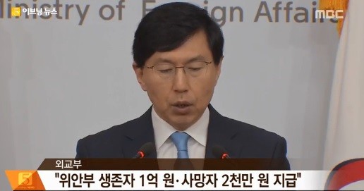 정부가 25일 일본군 위안부 피해자들에게 생존자는 1억원,사망자에게는 2천만원 규모의 현금을 지급하기로 했다.
