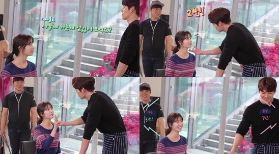 이후 그는 1, 2, 3번 동작을 선보이며 스태프들에게 어떤 것이 낳냐고 말했다. 이에 스태프들은 수지의 뒷목을 잡고 하는 신이 가장 멋있다며 3번을 추천했다. 수지 또한 밝은 웃음으로 3번이라고 말해 웃음을 유발했다.