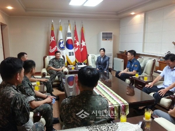 최근 경기 포천시 이동면방위협의회는 을지연습 기관에 맞춰 국토방위에 헌신하고 있는 군장병들을 위로하고 감사의 마음을 표현하고자 인근 군부대를 방문해 위문금을 전달했다. 사진은 관계자들이 환담을 진행하는 모습.(사진제공=포천시청)