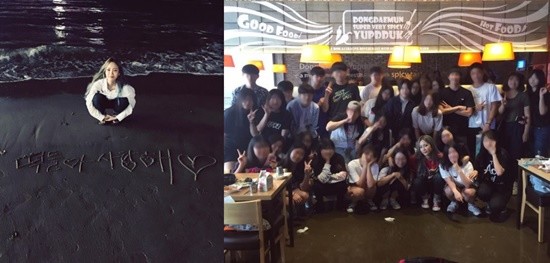 공개된 사진 속 헤이즈는 팬들을 ‘떡’이라고 부르며 단체사진을 찍고 모래사장에 ‘떡들아 사랑해’라고 쓰는 등 팬들을 향한 남다른 사랑을 나타냈다.