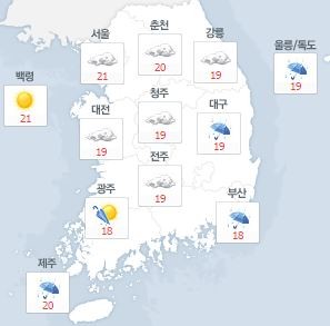 기상청에 따르면 오늘(28일) 날씨는 서울, 경기도와 강원도는 구름이 많고, 충청도와 남부지방, 제주도는 흐리고 비가 오는 곳이 있겠다. 경상도를 제외한 그 밖의 지역은 오후에 점차 그칠 것으로 예상된다.