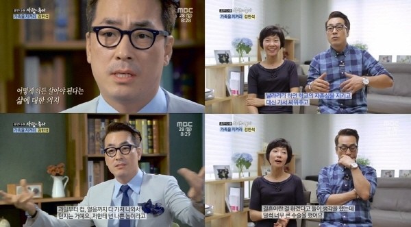 첫 사랑이었던 박선영 씨를 만나 결혼한 김한석은 아내를 보면 늘 애틋하다. 왜 나를 만났지, 왜 나를 사랑하지, 왜 나를 만나서 힘들지. 나를 만났으니까 행복하게 해줘야 하는 게 내 사랑인 것 같다"며 아내에게 고마움을 표했다.