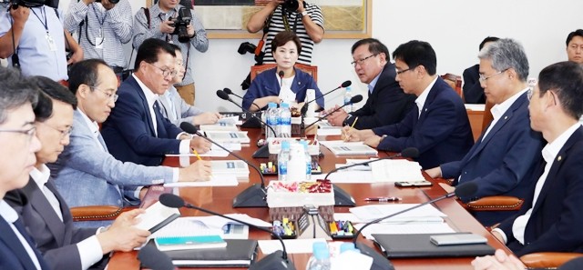 김현미 예산결산특위 위원장이 휴일인 28일 오전 국회 예결위 소회의실에서 열린 제1차 추경예산안등조정소위를 주재하고 있다.