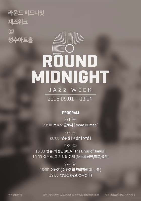이번 라운드 미드나잇-재즈위크는 멜론티켓을 통해 예매 가능하며, 오는 9월1일 티켓은 2만5000원, 나머지 날은 3만원이다.