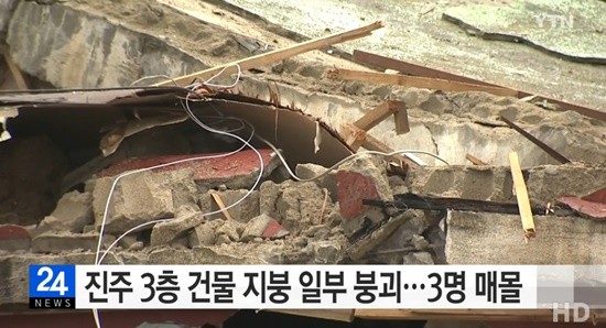 지난 28일 오전 경남 진주시 장대동에서 3층 지붕이 갑자기 무너지면서 3명이 매몰되고 3명이 부상을 입는 사고가 났다.