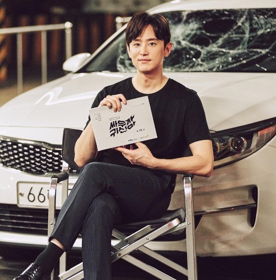 공개된 사진 속 그는 의자에 앉아 '싸우자 귀신아' 대본을 들고 카메라를 응시하고 있다.