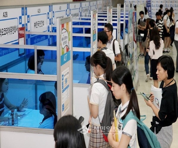최근 서울 성동구는 특성화고 학생들에게 취업의 기회를 제공하기 위해 서울시, 서울동부고용노동지청, 서울지방중소기업청과 함께 '2016 특성화고 희망 채용박람회'를 개최했다. 사진은 박람회를 방문한 학생들이 면접을 보기 위해 기다리는 모습.(사진제공=성동구청)