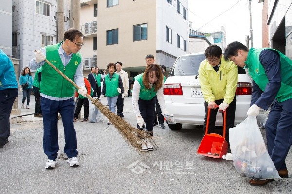 1일 경북 구미시 인동동에서는 인동 중앙공원과 인동시장 일원에서 남유진 시장(왼쪽)을 비롯한 시·도의원, 자생단체, 유관기관, 공무원, 주민 등 300여명이 참석한 가운데 9월 새마을대청소를 대대적으로 실시했다.(사진제공=구미시청)