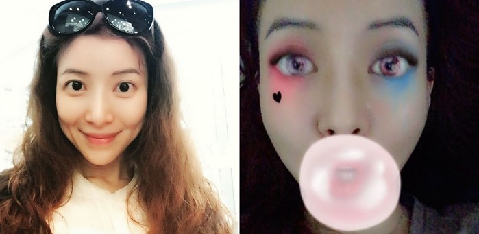 왼쪽의 윤세아는 화장기 없는 얼굴로 수수한 매력을 뽐내고 있다.반면 오른쪽에서는 영화 '수어사이드스쿼드'에 나오는 마고 로비를 연상케하는 모습으로 다양한 분위기를 연출했다.