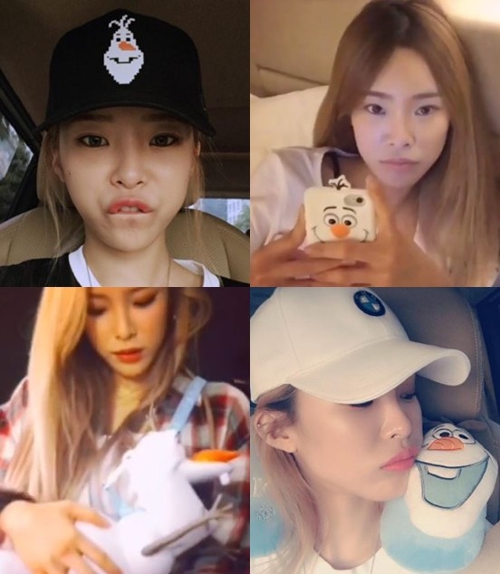 헤이즈의 인스타그램을 살펴보면 알 수 있듯 게재된 사진 속 헤이즈는 자신의 모자, 폰케이스, 베개 등에 모두 올라프가 새겨져 있다.