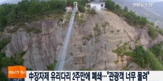 장가계 대협곡 관리 당국은 지난 1일 공식 웨이보 계정을 통해 "시급한 시설 개선이 필요해 2일부터 다리를 폐쇄한다"고 밝힌 바 있다.