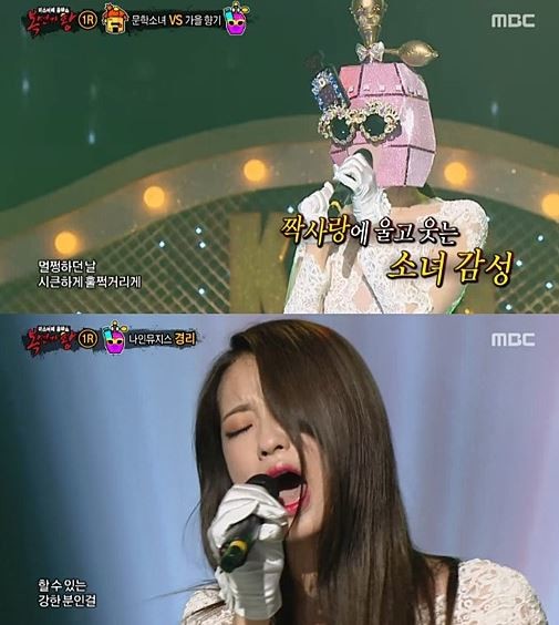 해당 방송을 접한 누리꾼들은 한 포털사이트에 "kss2**** 경리가 나인뮤지스 먹여 살린다 힘내라 소녀가장이여" "kjm7**** 경리 목소리 진짜 좋더라. 알고 있었지만, 또 한번 반했음" "nine****수고했어 긴장 많이 한 거 같던데 그래도 잘했고 복면가왕 나와줘서 고마워. 역시 음색도 짱짱" "flee****