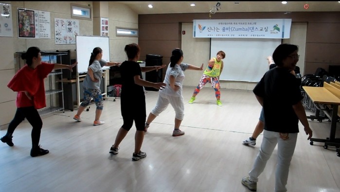 최근 은평구 드림스타트는 드림스타트 부모들의 건강과 양육 스트레스 해소를 위한 ‘줌바(Zumba)댄스교실’의 운영을 시작했다. 사진은 참가자들이 댄스 수업을 받고 있는 모습.(사진제공=은평구청)