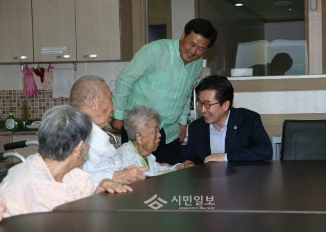이날 위문은 노인복지시설 백세재활요양병원과 북교동 교회 복지센터, 아동복지시설인 공생원, 명도복지관(장애인)을 찾아 생활인들에게 생필품 등을 전달하고 시설 관계자들의 애로사항을 청취했다.