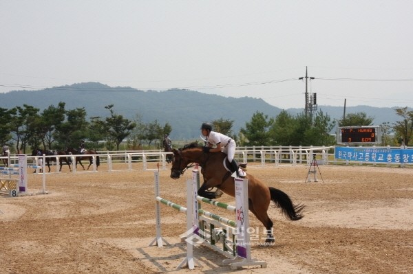 지난 4일 경북 구미시승마장에서 ‘제2회 구미낙동강 馬구마구 축제’ 아래 개최된 ‘제46회 전국학생승마선수권대회 겸 제4회 유소년전국승마대회’가 성황리에 막을 내렸다. 사진은 대회 참가자가 말과 함께 장애물을 넘고 있는 모습.(사진제공=구미시청)