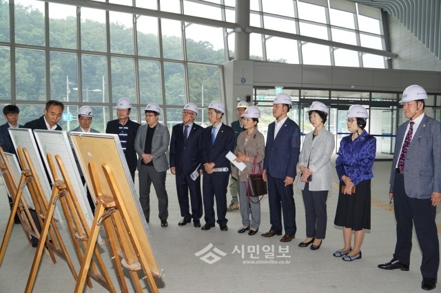 | ▲ KTX 수서역사를 방문해 현장 상황을 살펴보고 관계자로부터 공사진행 사항에 대해 브리핑을 받고있는 복지도시위원회 의원들.(사진제공=강남구의회) | ||