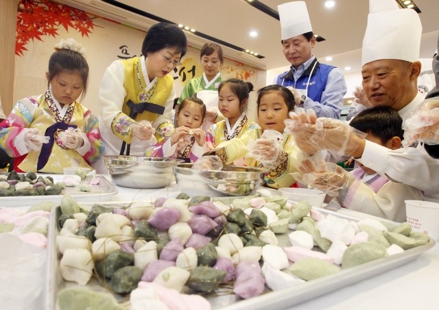 8일 오후 경기도 수원시 대한적십자사 경기도지사에서 열린 '삼성과 함께하는 추석맞이 정(情)나눔'행사에서 참석자들이 송편을 빚고 있다.