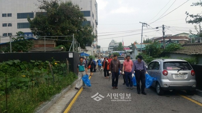 9일 오전 7시 경기 동두천시 생연2동 주민센터에서는 추석 명절을 맞이해 귀성객과 시민을 위한 환경정화 활동을 펼쳤다. 사진은 관계자들이 쓰레기를 줍는 모습.(사진제공=동두천시청)