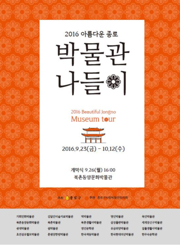 또 ▲북촌동양문화박물관에서는 ‘아름다운 우리민화 어제와 오늘 그리고 미래’ 특별전이 열리고, ‘옛날물건(절구, 맷돌 등)체험’프로그램에 참여할 수 있으며 ▲쇳대박물관에서는 ‘이화동 마을박물관 상설전’이 열리고, ‘쇳대 원정대 박물관 활동지, 물고기 자물쇠 꾸미기’를 체험할 수 있다.