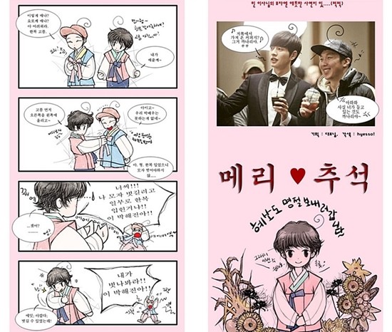 이어 한복을 곱게 차려 입고 초롱초롱한 눈망울에 개구진 미소로 "메리 추석"이라는 인사와 함께 팬들에게 추석 인사를 건네는 박해진의 웹툰 캐릭터가 더욱 설렘으로 다가온다.