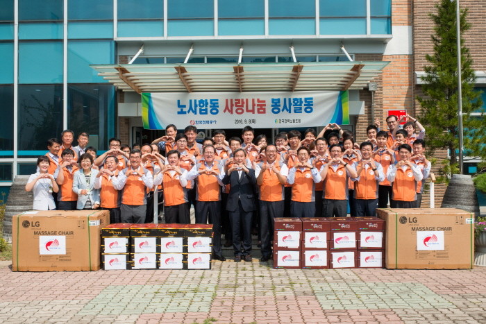 조환익 사장과 신동진 전력노조 위원장은 “요즘 경제여건이 어렵지만 이럴 때일수록 어려운 이웃에 대한 따뜻한 관심과 지원이 더 필요하다”며, “앞으로도 한전은 노사가 하나되어 지속적으로 이웃사랑을 실천할 것” 이라고 밝혔다.