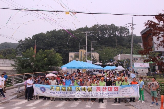 최근 경기 용인시 기흥구 기흥동은 동주민센터 인근에 위치한 자봉산 일대에서 주민 600여명이 참여한 가운데 한마음 등산대회를 개최했다. 사진은 관계자들이 기념촬영하는 모습.(사진제공=용인시청)