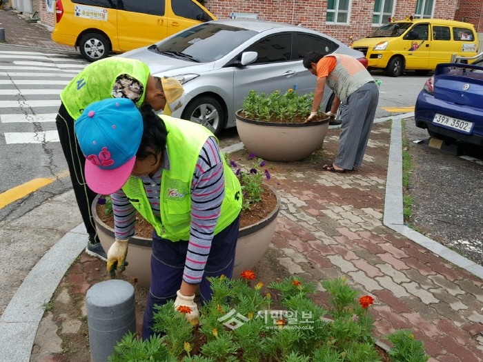 최근 경북 구미시 송정동에서는 공공근로참여자, 담당공무원 등이 참여한 가운데 메리골드, 베고니아 등 여름꽃 1500여본을 식재했다. 사진은 이날 참여한 관계자들이 꽃을 식재하는 모습.(사진제공=구미시청)