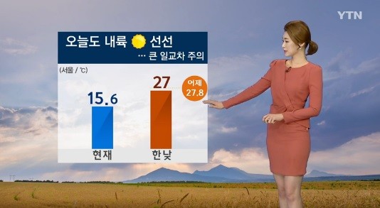 오늘 아침 최저기온은 ▲서울16도 ▲부산 18도 ▲대구 17도 ▲대전 15도 등이다. 낮 최고기온은 ▲서울 27도 ▲부산 24도 ▲광주 27도 ▲대구 24도 등이다.