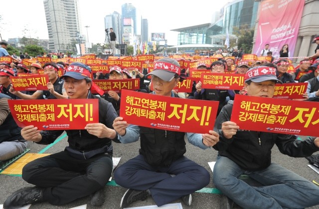 구호외치는 공공노련 노동자들