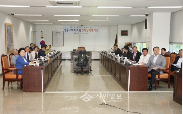 | ▲ 22일 서울 성동구의회는 구의회 제2회의실에서 청탁금지법의 시행에 앞서 법률에 대한 이해와 청렴문화 조성을 위한 특강을 개최했다. 사진은 김달호 의장(오른쪽 줄 맨 앞)과 구의원 등 관계자들이 교육을 청취하는 모습.(사진제공=성동구의회) | ||