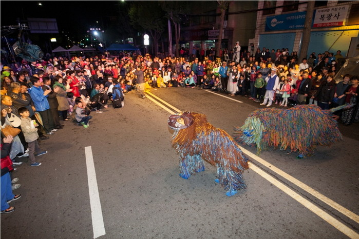 | 2015년 은평누리축제 폐막식에서 사자춤놀이가 진행되며 행사의 흥을 돋우고 있다. | ||