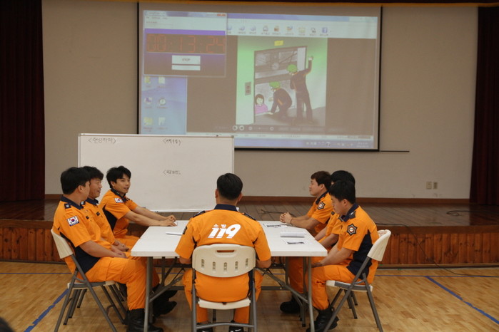 최근 관악소방서는 2016년 자체 위험예지훈련 경연대회를 실시했다. 사진은 소방서 관계자들이 판단된 위험을 어떻게 예방하고 조치해야 하는 지에 대해 토론하는 모습.(사진제공=관악소방서)