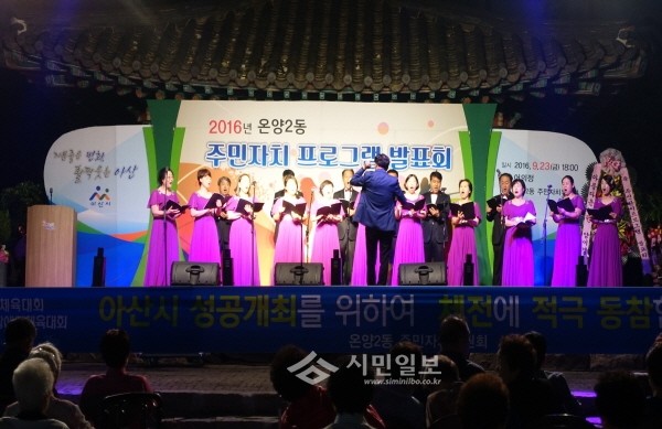 최근 충남 아산시 온양2동 주민자치위원회는 온양 어의정에서 '2016년 온양2동 주민자치센터 프로그램 발표회'를 개최했다. 사진은 프로그램 수강생들이 합창 공연을 하고 있는 모습.(사진제공=아산시청)