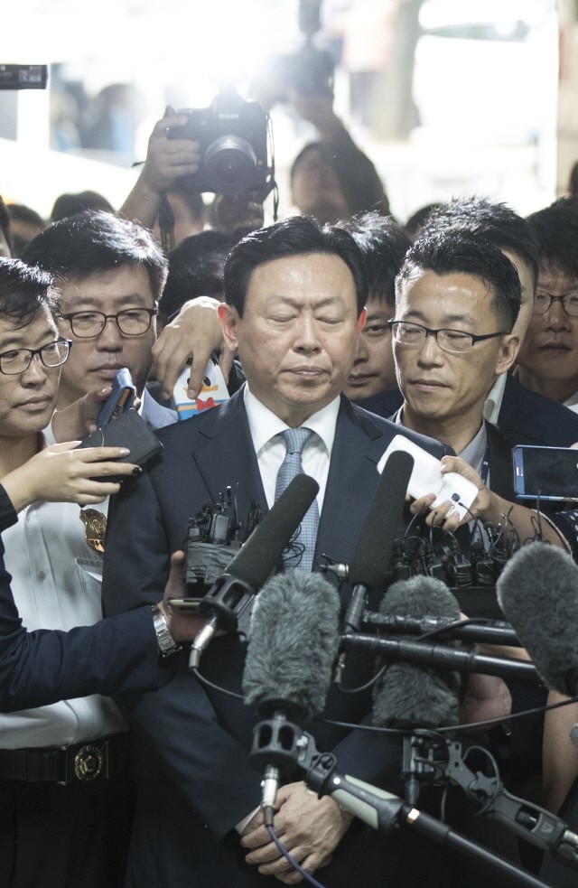 1천700억원대 횡령·배임 등의 혐의로 수사를 받아온 신동빈 롯데그룹 회장이 영장실질심사를 받기 위해 28일 서초구 서울중앙지법으로 들어서며 취재진의 질문을 듣고 있다.