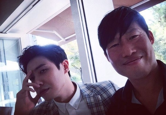 사진속에는 유해진은 친근한 미소를 짓고 있고 이준은 샤프한 포즈로 카메라를 바라보고 있다.