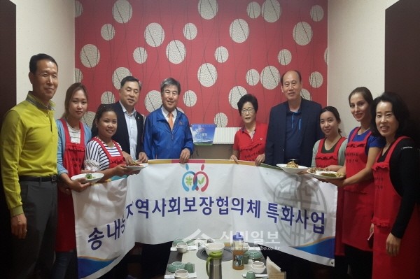 지난 30일 경기 동두천시 송내동 지역사회보장협의체는 다문화가정을 이루고 있는 결혼이주 여성들과 함께 '한식 문화 체험'을 실시했다. 사진은 오세창 시장(왼쪽에서 다섯 번째)과 참여자들이 기념촬영을 하는 모습.(사진제공=동두천시청)